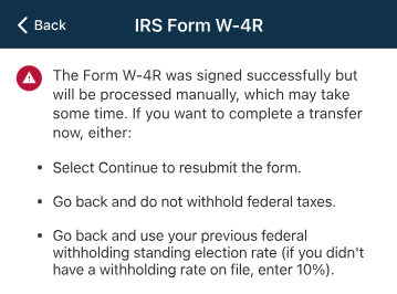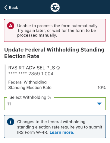 For the 2022 tax year, the IRS introduced a new Form W4-R. It needs to be submitted each time you change something called your “federal withholding standing election rate.” That rate can be set for all situations, or it can be changed as part of a money transfer. This leads to a bunch of very complicated if/then scenarios and behind-the-scenes processes.